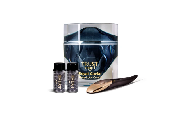 کرم خاویار تراست اسمارت، محصولی لوکس و پیشرفته برای مراقبت از پوست در برابر عوامل آسیب‌رسان محیطی و داخلی است. این کرم با بهره‌گیری از ترکیبات فعال خاویار، ویتامین‌ها، پپتیدها و مواد معدنی، به بازسازی سلول‌های آسیب‌دیده پوست کمک کرده و با آبرسانی عمیق، نرمی، سفتی و جوانی پوست را بازیابی می‌کند. تکنولوژی میكروكپسولاسیون و بایولاک در این محصول، نفوذ عمقی ترکیبات فعال و اثر بلندمدت روی پوست را تضمین می‌کند و بهبود چین و چروک، تیرگی و لک‌های پوستی را به همراه دارد.